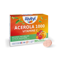 Alvityl Acérola 1000 Vitamine C est formulé à partir de jus concentré d’acérola, un fruit riche en vitamine C, qui contribue à réduire la fatigue, préserver le tonus et contribuer aux défenses immunitaires. Alvityl Acérola 1000 Vitamine C est...